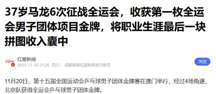 自此,他成为国乒史上唯独一位在全运会乒乓球男人名堂中散伙全满贯确立的选手。