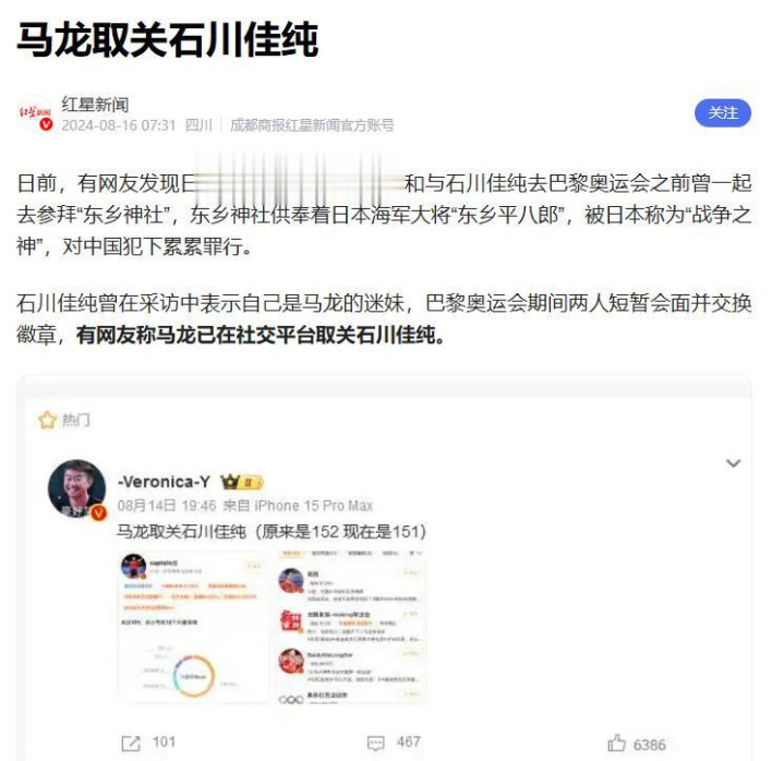 原因就在于网友发现石川佳纯曾去参拜“东乡神社”。