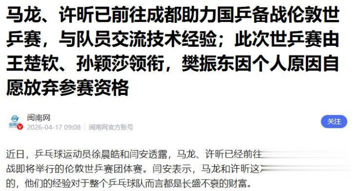 自后,多名国乒队员阐述了这个音书。
