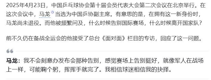 也许恰是这份实力和格调,马龙在2025年当选为中国乒协副主席。