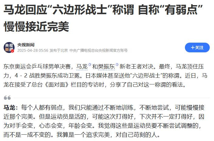 而这话一丝不夸张,熟习国乒的东说念主都知说念,马龙的办事生存,即是一部“极致追求完好”的奋发史。