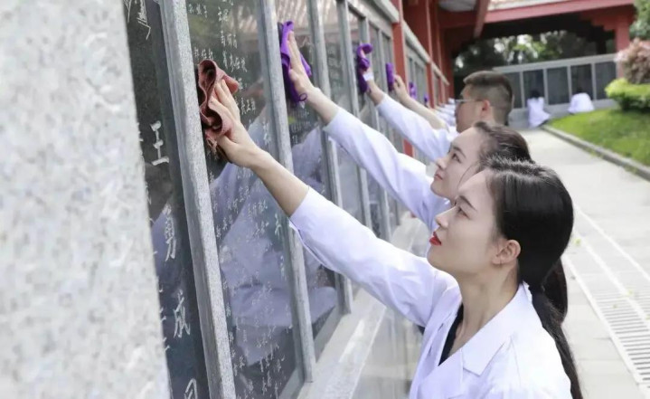 祭扫收尾,合座学员在程祥云辅导下高举右拳,尊容宣读医学生誓词。掷地有声的誓词在碑林回荡,既是对医学作事的提防欢跃,亦然对立异先烈的告慰,让红色基因真的融入医者血脉。