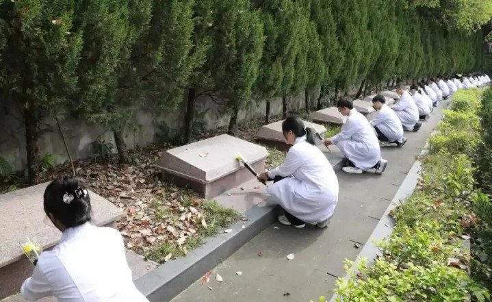 随后,学员们手执擦墓巾,躬身擦抹碑身尘土、整理碑前环境,以朴素步履系念能人。指尖抚过石碑,仿佛与先辈隔空对话,红色精神在心中悄然扎根,让医德诠释与红色传承更接地气、更入东谈主心。