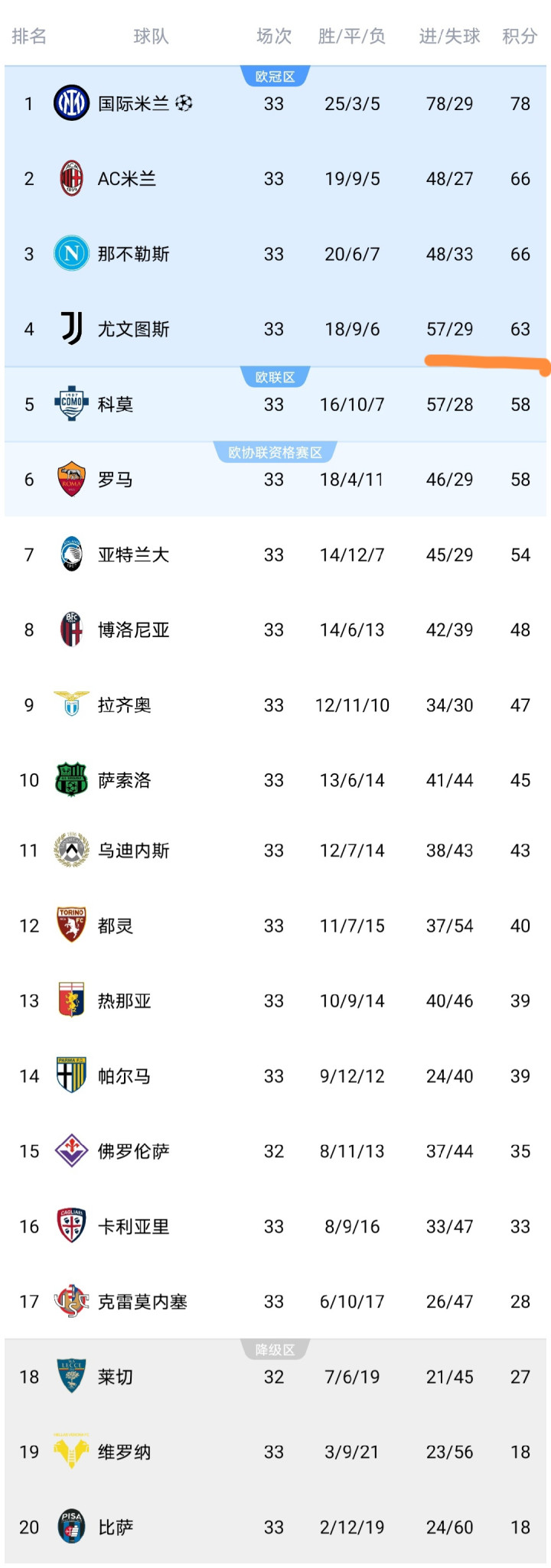 不错看到这场比赛之后,意甲积分榜发生变化:
