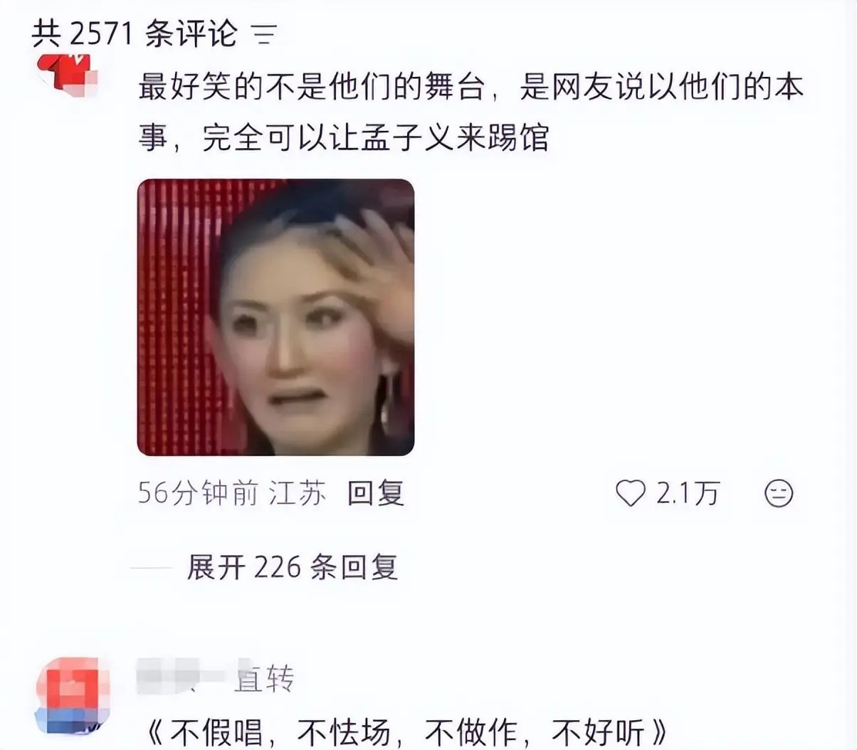 濒临这场“浪姐史上最从邡的小考”,不雅众心态悄然发生了变化。竞争“第一”的悬念不再是要点,“倒数第一是谁”反倒成了热点商议话题。有网友明锐地评价:“这届姐姐不是在争冠军,是在争倒数第一!”还有东谈主辱弄:“浪姐版权费全白花了!”一条得回大批点赞的评发扬:“离开了假唱修音,个个唱歌齐像孟子义(注:以其早期跑调名场合出圈),信得过得让东谈主既深爱又认为可笑。”