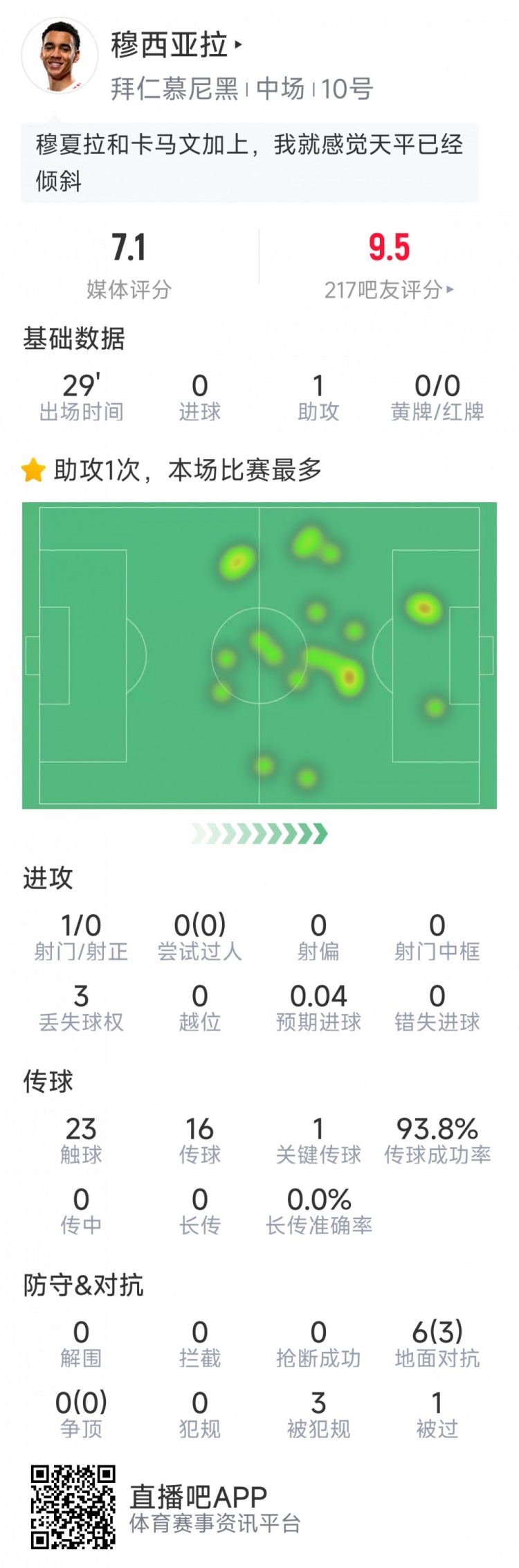 开云app 穆西亚拉本场数据:替补登场送出关节助攻,1次射门,1关节传球